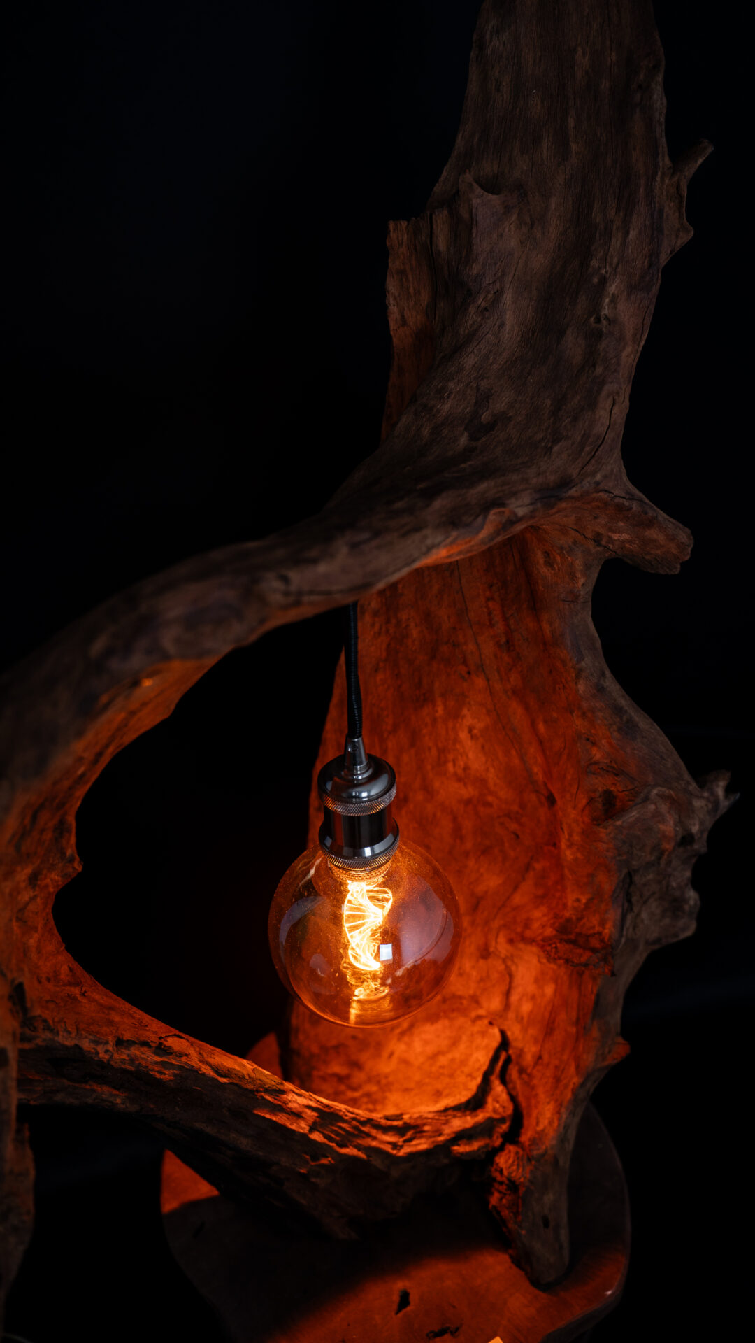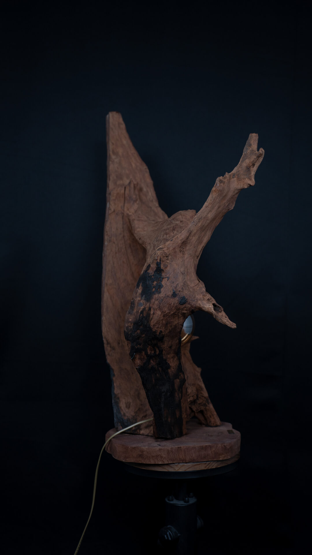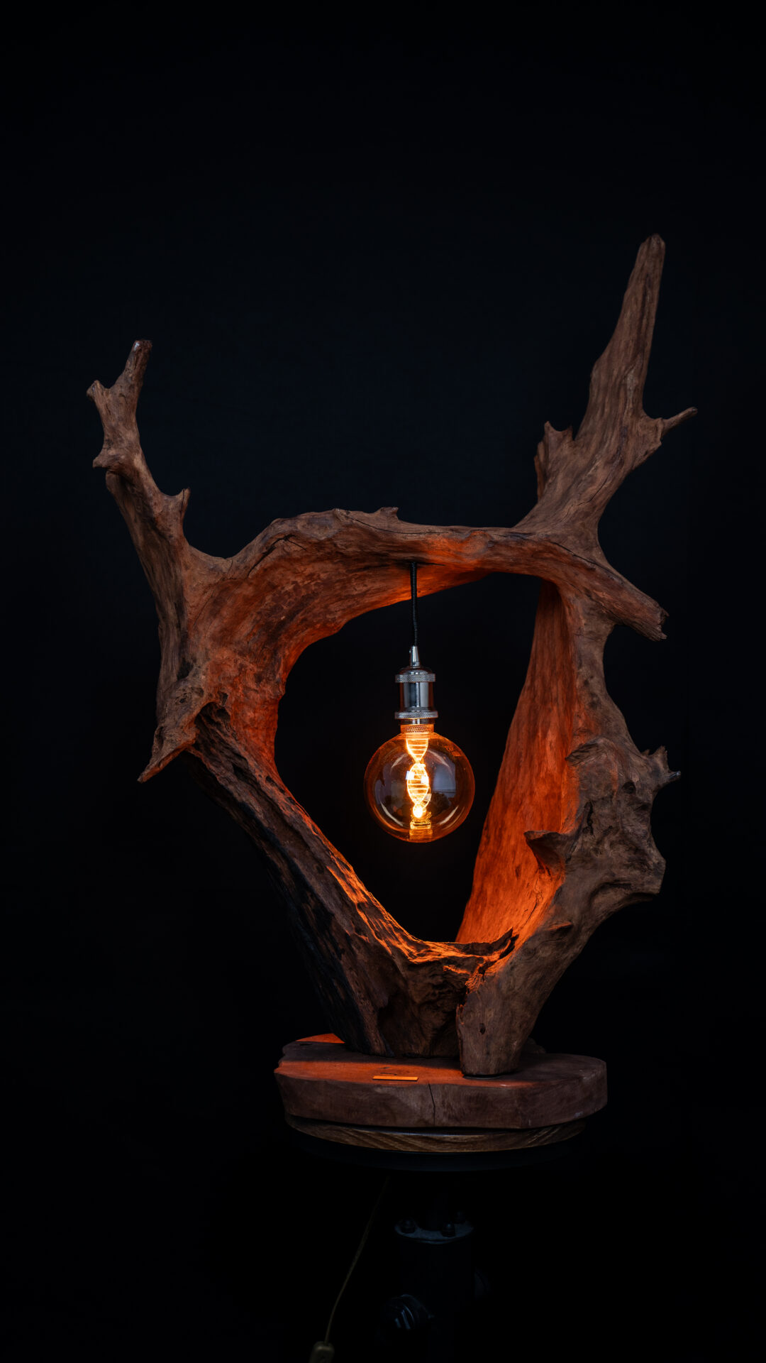 Nos luminaires sont fabriqués à partir de souches de bois soigneusement sélectionnées. Chaque pièce est unique et conçue pour durer, alliant esthétisme et robustesse.