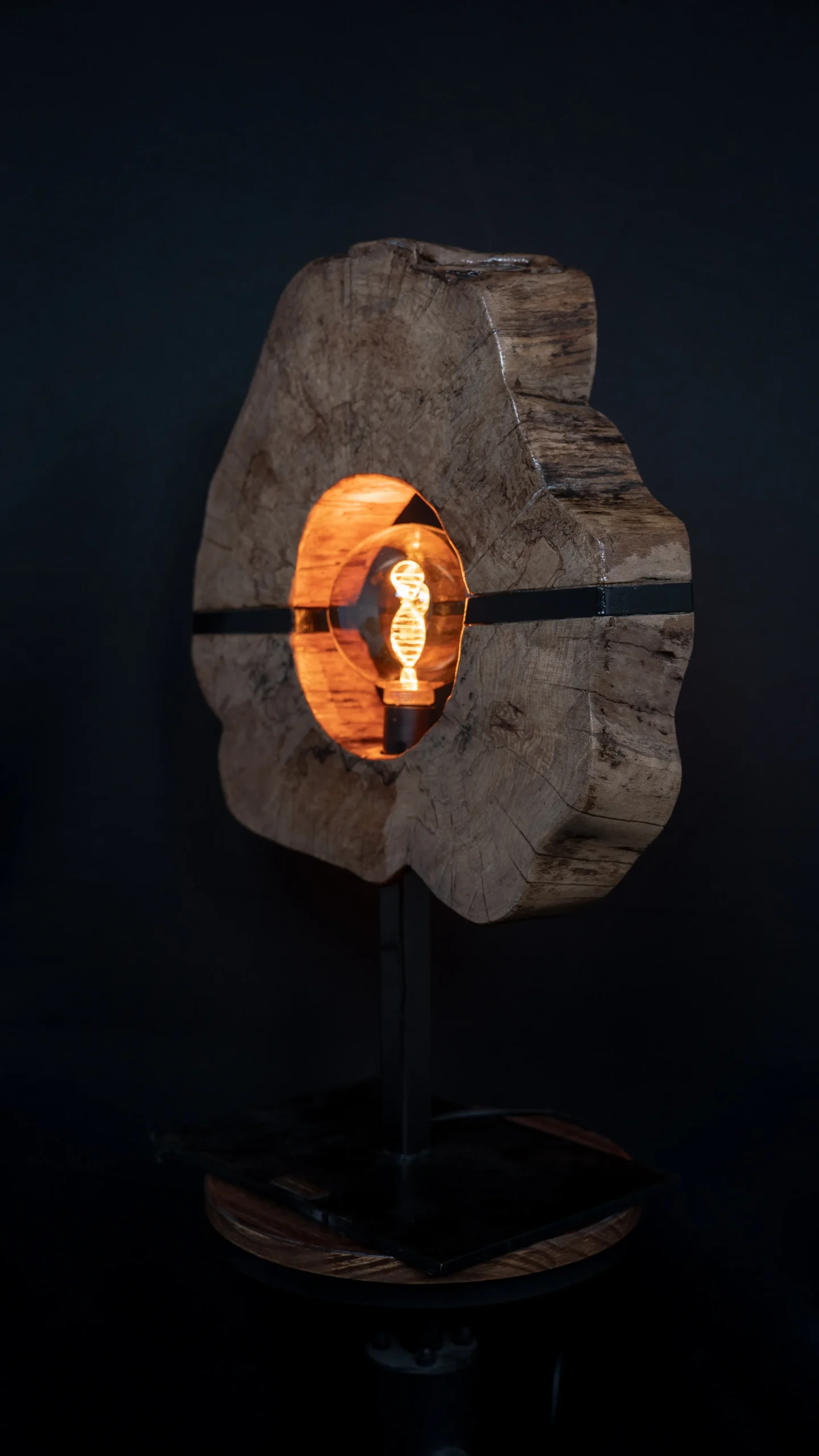 Nos luminaires sont fabriqués à partir de souches de bois soigneusement sélectionnées. Chaque pièce est unique et conçue pour durer, alliant esthétisme et robustesse.