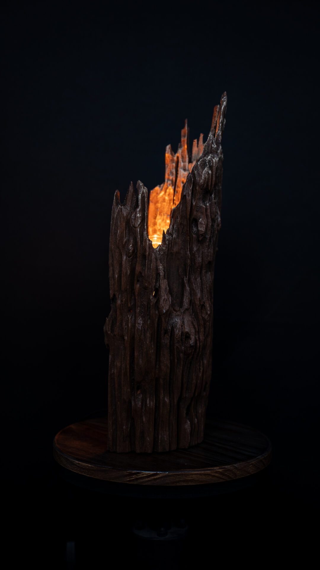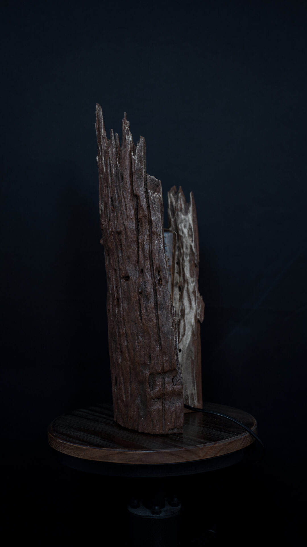 Nos luminaires sont fabriqués à partir de souches de bois soigneusement sélectionnées. Chaque pièce est unique et conçue pour durer, alliant esthétisme et robustesse.